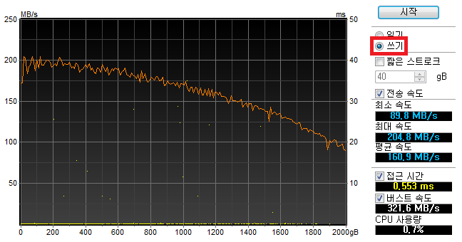 HD Tune 쓰기 벤치마크 결과입니다.