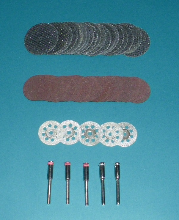 커팅 디스크 3종과 디스크와 조각기를 연결하기 위한 맨드릴(Mandrel)로 구성되어 있었습니다.