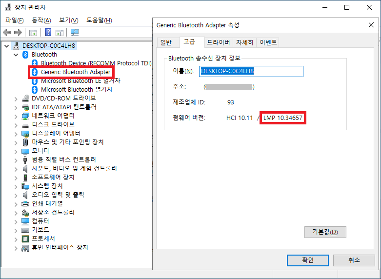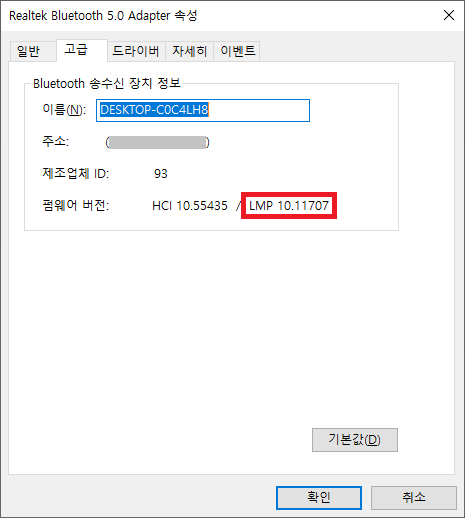 LMP 값이 10.xx 형태기 때문에 실제 블루투스 버전은 5.0이 아닌 5.1이었습니다.
