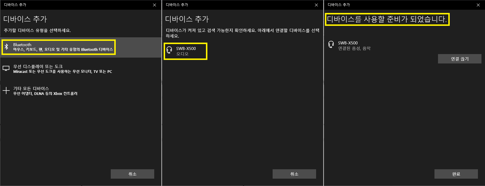 리얼텍 드라이버 설치 후에는 장치를 잘 검색하고 연결도 잘 되었습니다.