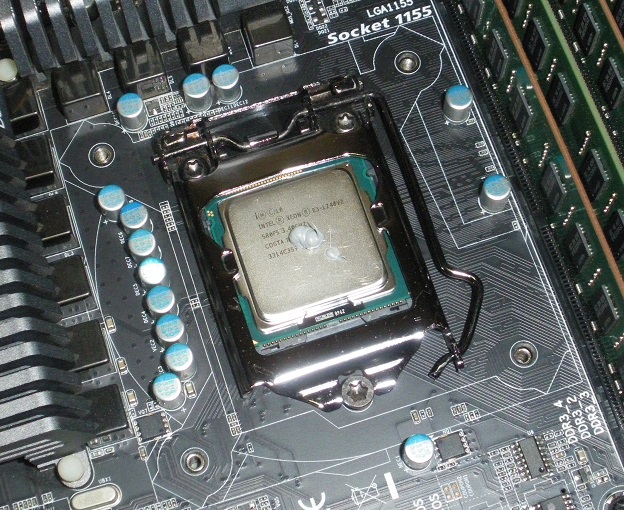 CPU 위에 써멀 구리스를 짠 사진입니다.