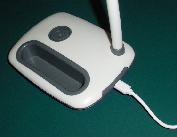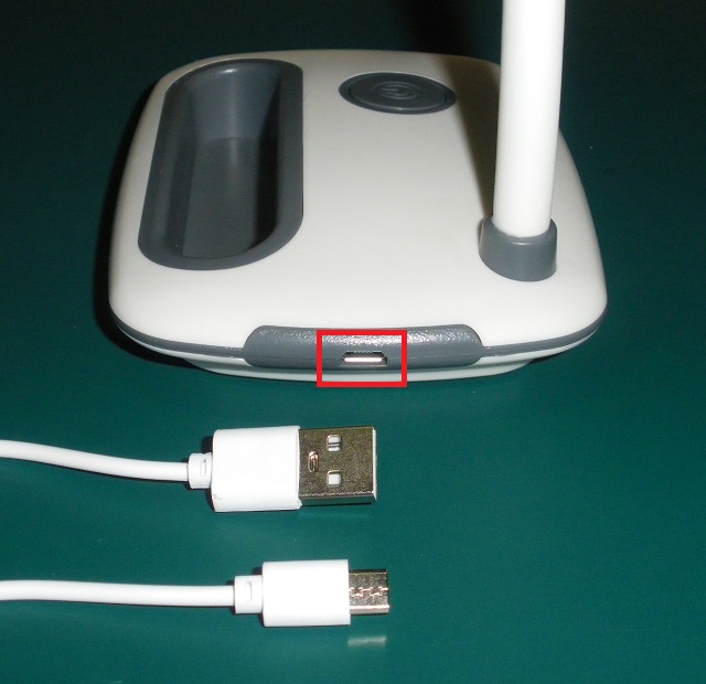 측면의 USB 전원 연결 단자와 USB 케이블 사진입니다.