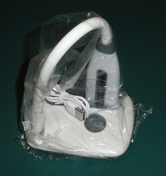 본체가 비닐에 들어 있고 USB 케이블이 본체 위에 놓여 있었습니다.