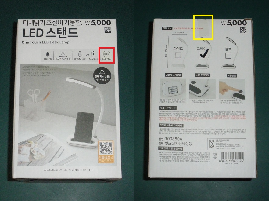 다이소 LED 스탠드 박스 사진입니다.