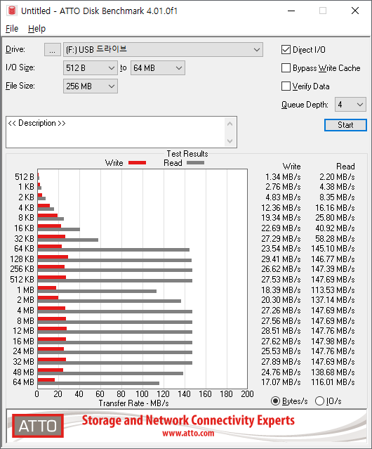 읽기 120MB/s, 쓰기 26.4MB/s의 결과를 보여 줬습니다.
