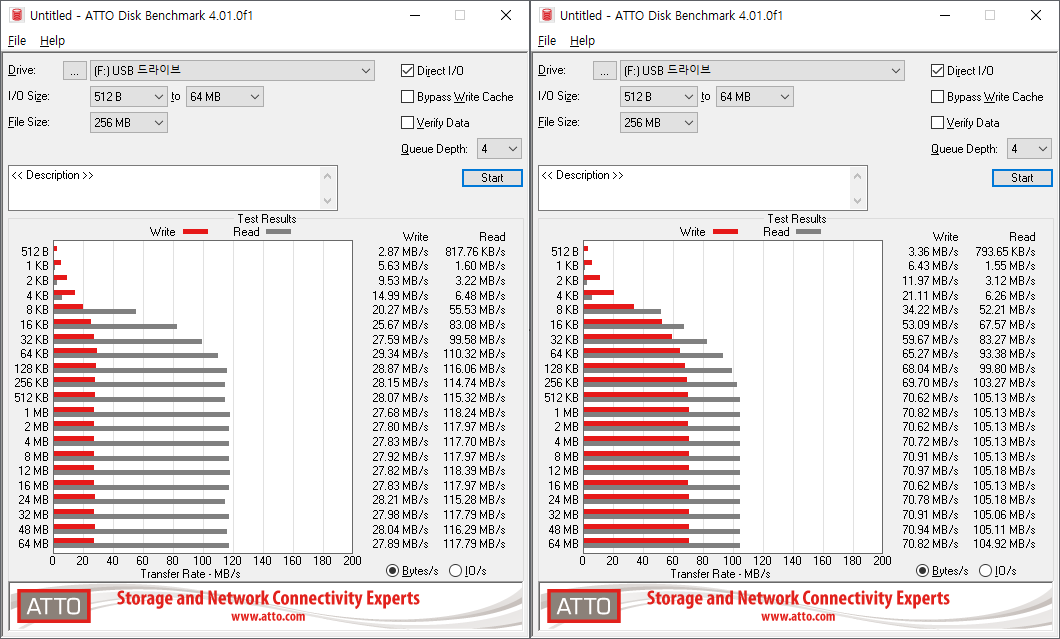 ATTO 디스크 벤치마크 결과입니다.