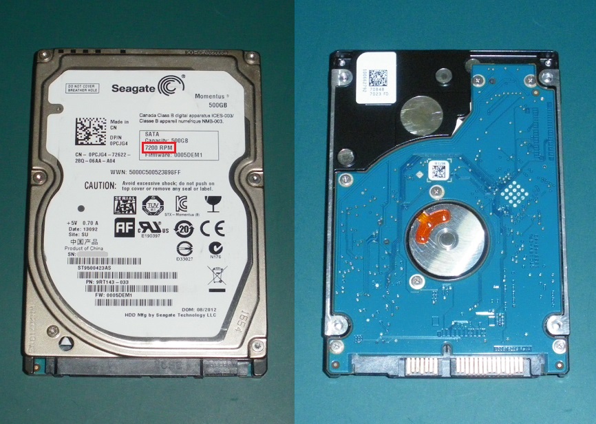ST9500423AS는 플래터가 2장 사용되고 회전속도가 7200RPM인 2.5인치 하드 디스크입니다.