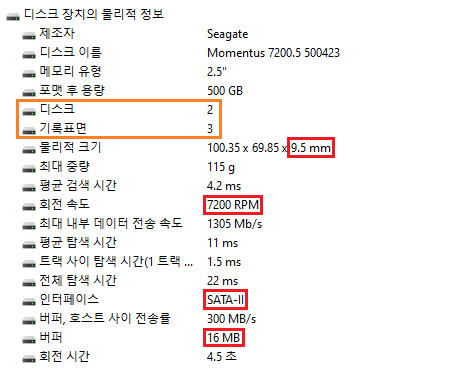 높이가 9.5mm이고 7200 RPM으로 동작합니다.