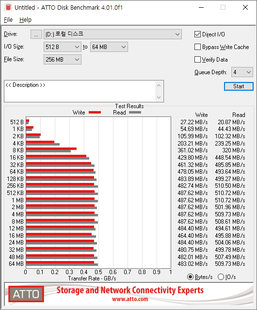 ATTO Disk 벤치마크 결과입니다.