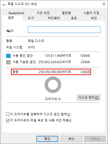 디스크 속성 창입니다.