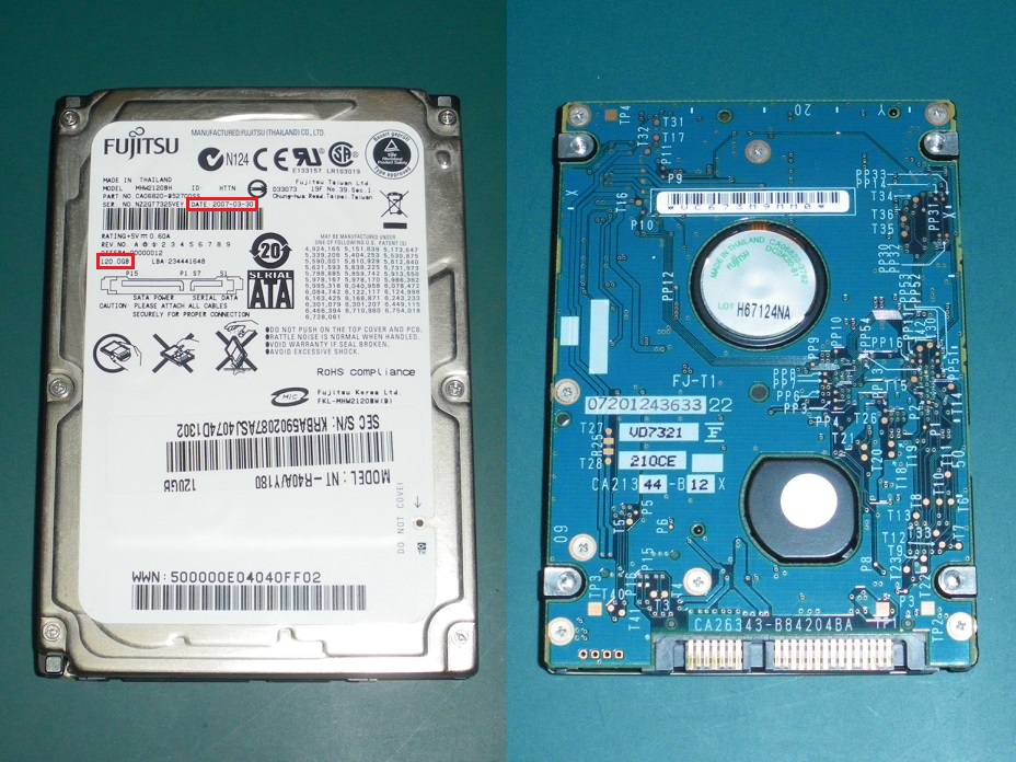속도 테스트에 사용한 Fujitsu MHW2120BH 사진입니다.