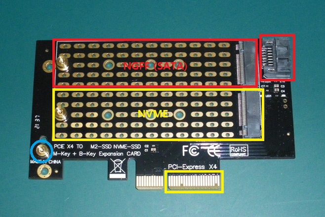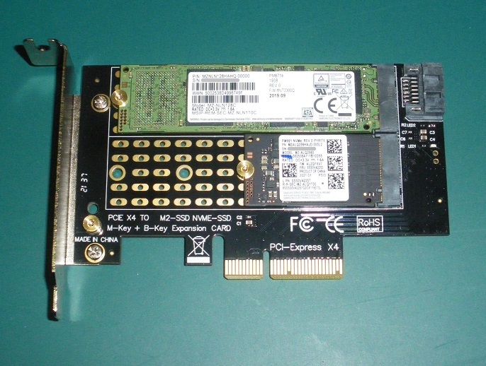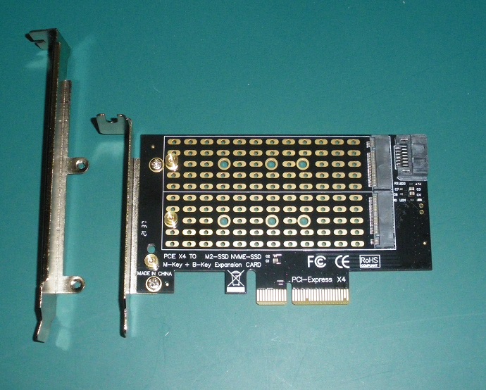 M.2 NVMe만 PCI-E로 변경해 주는 일반적인 NVMe to PCIe(https://honghome.tistory.com/854)와 비교하면 추가로 M.2 SATA SSD를 같이 사용할 수 있는 장점이 있는 모델입니다.