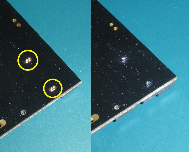 불량 내용은 SATA 단자 뒷부분의 단단히 고정하기 위한 가이드가 납땜이 되지 않은 상태였습니다.