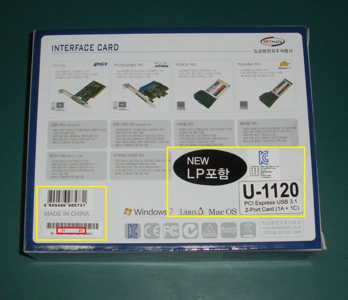 강원전자의 일부 확장 카드들은 이런 식으로 같은 박스에 스티커만 다르게 붙여서 판매되는 제품군이 있습니다.