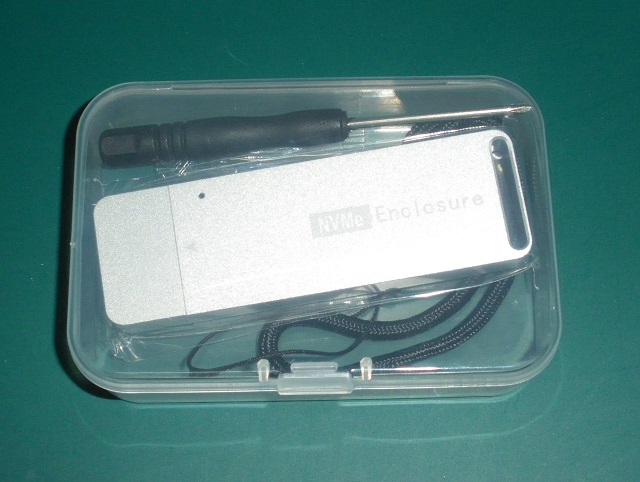 인클로저 본체, 드라이버, 서멀 패드, 나사, 스트랩으로 구성되어 있습니다.