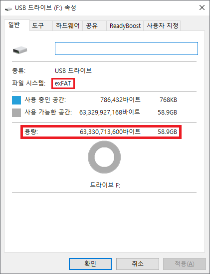 exFAT 방식으로 포맷이 되어 있었습니다.