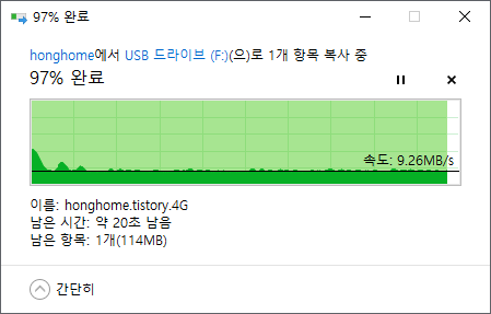 실제 4GB 파일을 U40 Bullet로 복사할 때의 속도 스샷입니다.