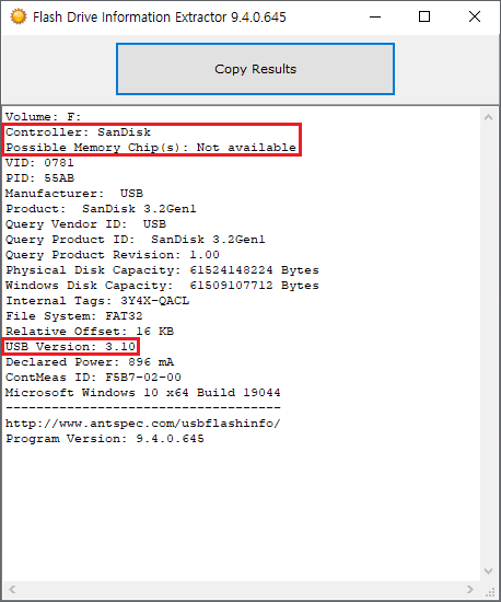 Flash Drive Information Extractor로 확인한 정보입니다.