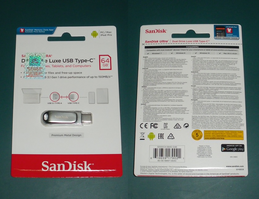 Sandisk Ultra Dual Drive Luxe Type-C 64GB의 포장 사진입니다.