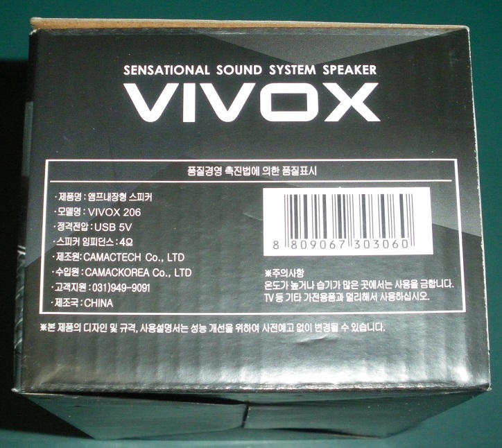 VIVOX 206는 USB 전원을 사용하는 2 채널 미니 스피커로 스피커의 가격이 배송비 보다 저렴한 초 저가의 스피커입니다.