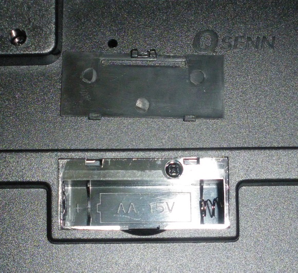 오른쪽 상단 공간에 AA 건전지 2개가 들어 있습니다.