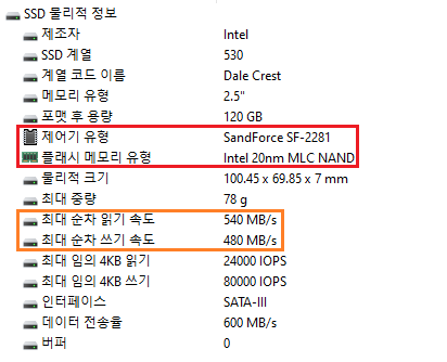 인텔 530 SSD 시리즈는 2013년도에 출시한 구형 2.5인치 SATA 방식의 SSD로 샌드포스 컨트롤러와 인텔 MLC 낸드가 사용된 Sata3 SSD입니다.