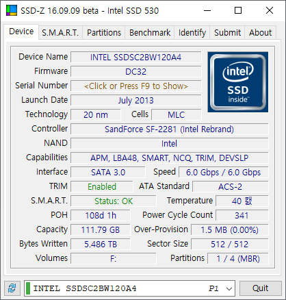 요즘 사용하기에 120GB 용량은 많이 부족한 편이고 실제 쓰기 성능도 벤치 결과보다 안 좋은 편이지만 OS 설치 테스트 목적이기 때문에 개인적으로는 만족합니다.