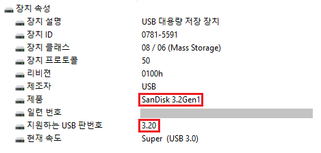 제품명이 SanDisk 3.2 Gen1로 되어 있었습니다.
