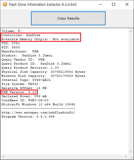 Flash Drive Information Extractor로 확인한 USB 메모리 정보입니다.