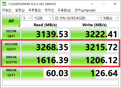 PCIe 3.0 버전에서 테스트했기 때문에 최대 속도를 얻을 수는 없었습니다.