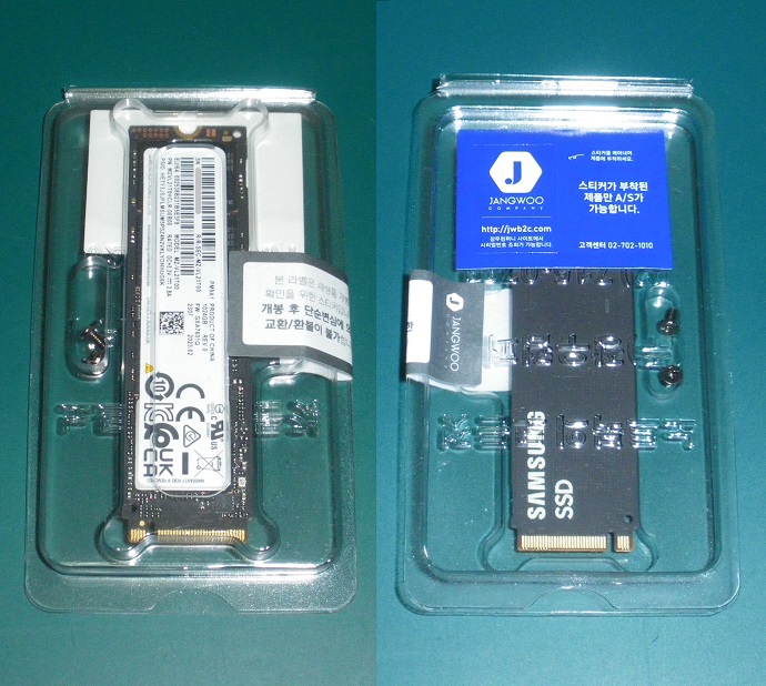 PM9A1 SSD와 고정용 나사로 구성되어 있었습니다.